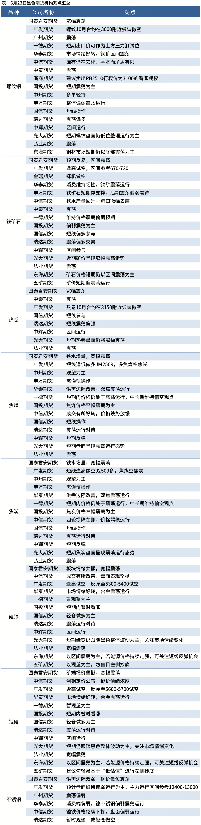 据Mysteel统计6月23日19家期货机构操作策略,其中多数机构料螺纹钢震荡运行,铁矿石震荡运行。具体汇总内容如下: