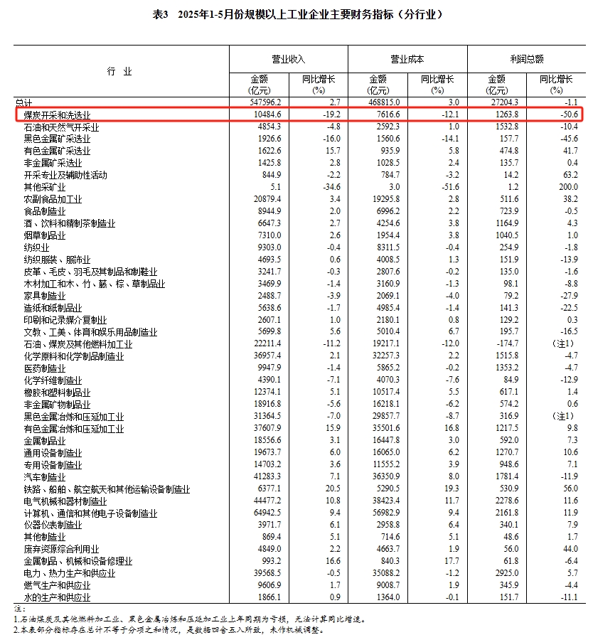 1—5月份,采矿业实现利润总额3580.4亿元,同比下降29.0%;制造业实现利润总额20201.4亿元,增长5.4%;电力、热力、燃气及水生产和供应业实现利润总额3422.5亿元,增长3.7%。