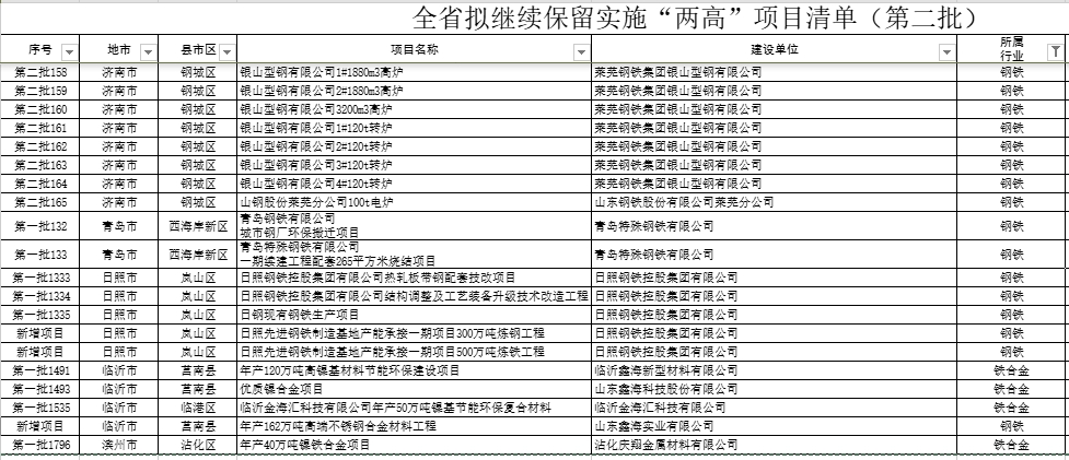 依据《山东省人民政府办公厅关于印发坚决遏制“两高”项目盲目发展的若干措施的通知》(鲁政办字〔2021〕98号)有关规定,经过省市县三级联合审查,现对第二批可以继续保留实施的“两高”项目进行公示,公示无异议后予以公告。