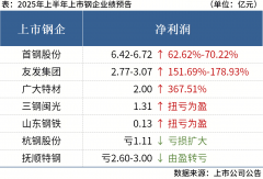 据Mysteel不完全统计,截至7月14日,有7家上市钢企公布2025年上半年业绩预告。3家企业预计2025年上半年净利润实现同比增长,2家扭亏为盈,2家亏损。其中,广大特材上半年净利同比预增368%,因公司下游所属行业需求整体向好,公司产销两旺,营业收入同比实现增长32.91%左右。具体如下: