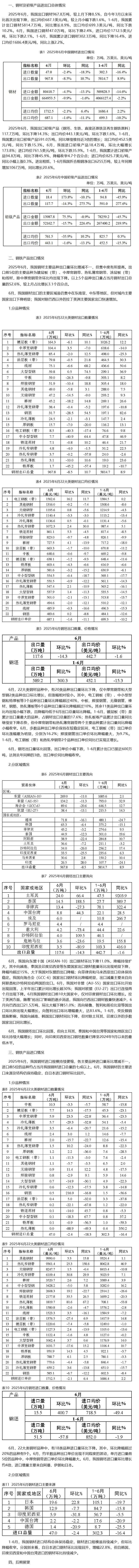 2025年1-6月,我国钢材出口量总体仍处于高位。但受国内市场形势变化及国外贸易救济调查限制出口的双重因素影响,6月单月钢材出口量继3-5月钢材出口量连续突破1000万吨大关后首次回落至千万吨以下;钢坯出口量环比也出现一定程度回落。今年下半年钢材出口或将呈现缓慢下降的趋势。建议出口企业持续调整出口结构,减少钢坯等初级钢铁产品出口;优化出口渠道,调节出口节奏,尽量避免出现短期内向个别国家出口激增的情况,降低遭受贸易救济调查的可能。