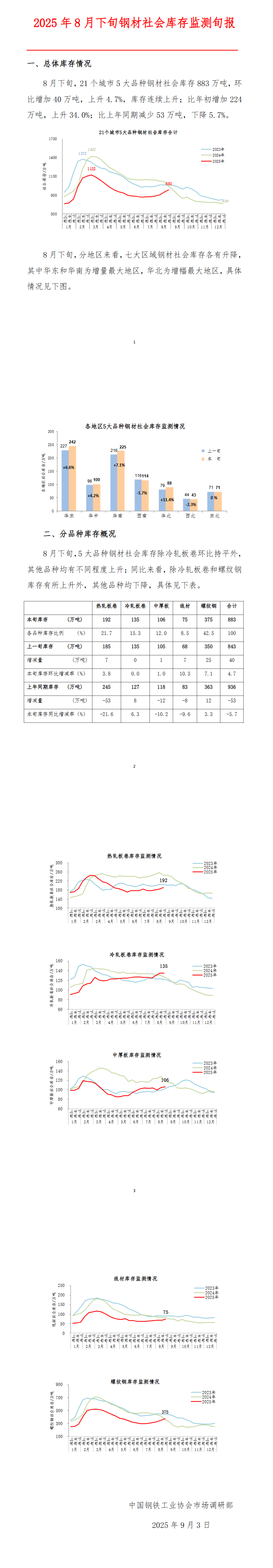 中钢协:8月下旬钢材社会库存883万吨