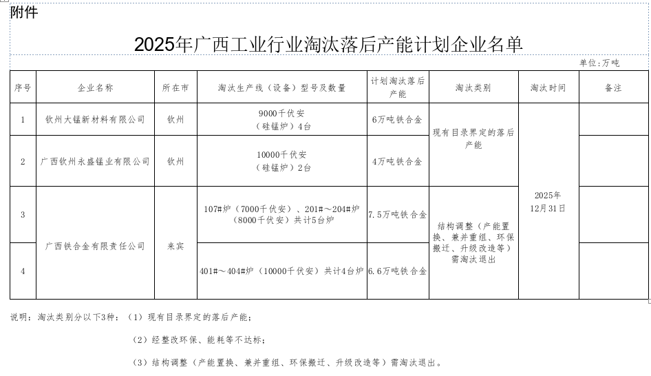 附件:2025年广西工业行业淘汰落后产能计划企业名单
