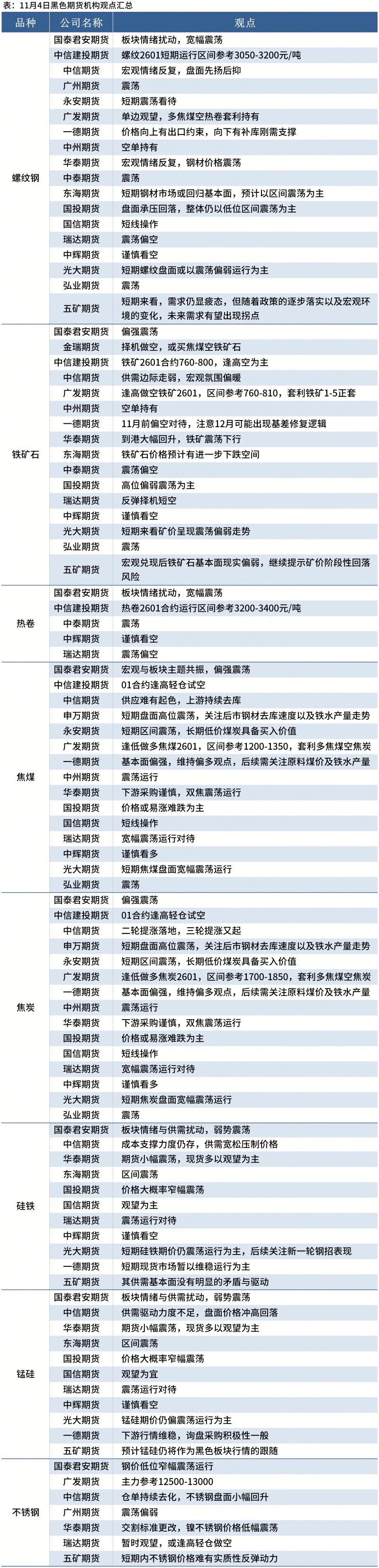 Mysteel统计11月4日19家期货机构操作策略,其中多数机构料螺纹钢震荡运行,铁矿石震荡运行。具体汇总内容如下: