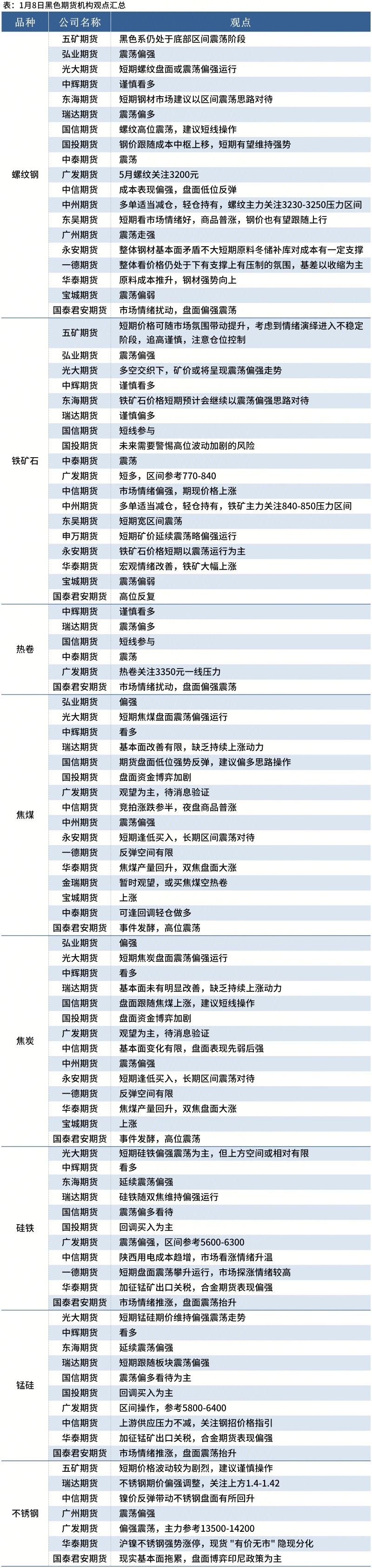 据Mysteel统计1月8日21家期货机构操作策略,其中多数机构料螺纹钢震荡偏强,铁矿石震荡偏强。具体汇总内容如下: