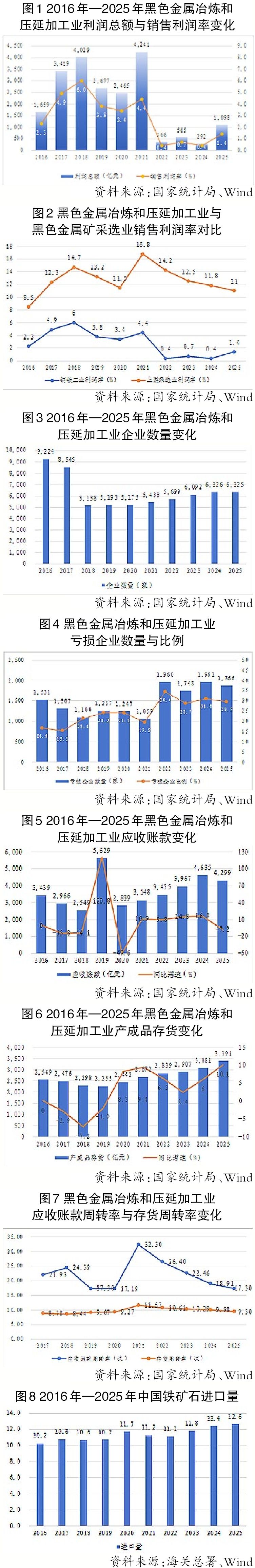 黑色金属冶炼和压延加工业是国民经济的基础性行业,其运行质量直接关系到建筑、机械制造、汽车等下游行业的成本与竞争力。本文通过充分借鉴参考业内相关专家的前期研究成果,以2016年—2025年规模以上工业企业相关数据为基础,从利润空间、企业结构、资金压力与资源控制力4个维度,对现阶段中国黑色金属冶炼和压延加工业发展现状展开系统分析与研究,以期为行业实现高质量发展提供思路与参考。