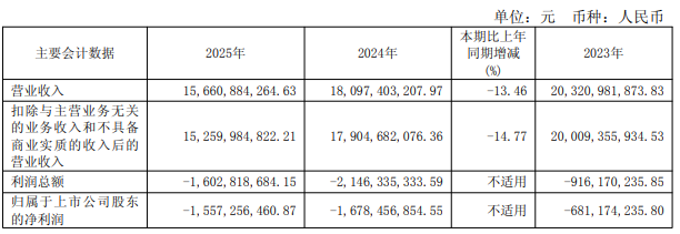 凌钢股份公布2025年年度报告,报告期内,公司实现营业收入156.61亿元,同比下降13.46%;归属于上市公司股东的净利润亏损15.57亿元。