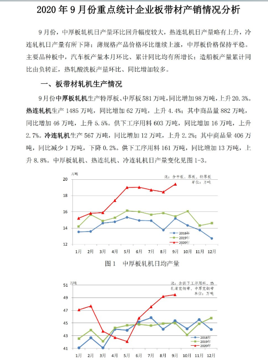 中钢协:2020年9月份重点统计企业板带材产销情况分析