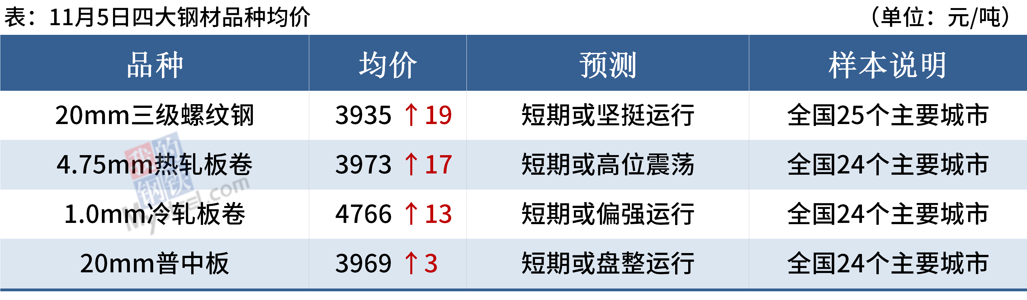 ◎ 10月,中厚板生产企业平均产能利用率为84.23%,月环比增0.59%;10月中厚板社会库存均值为116.20万吨,月环比增5.61%,年同比增8.54%;钢厂库存均值为91.72万吨,月环比增1.21%,年同比增18.47%。十一月中厚板价格预测>>
