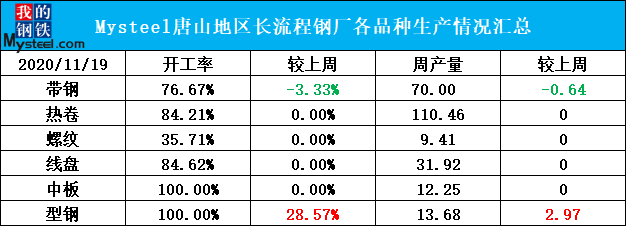 ◎ 本周,唐山地区126座高炉中有31座检修(不含长期停产),检修高炉容积合计26940m³;周影响产量约49.06万吨,产能利用率80.63%,较上周下降1.67%,较上月同期下降2.41%,较去年同期上升2.84%。