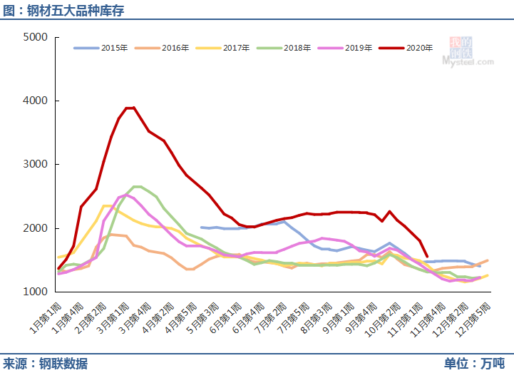 ◎ 本周,五大钢材品种产量1075.22万吨,周环比增加6.7万吨;表观消费量1171.81万吨,周环比减少47.48万吨;总库存量(社库+厂库)1553.87万吨,周环比减少96.59万吨,降幅较上周明显收窄。详情>>