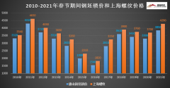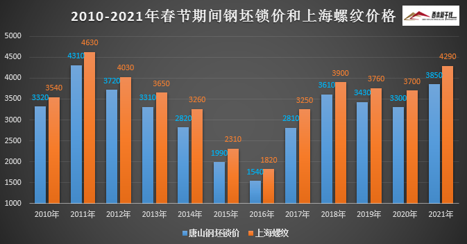 摘要:2010-2021年春节期间唐山钢坯锁价与上海螺纹价格