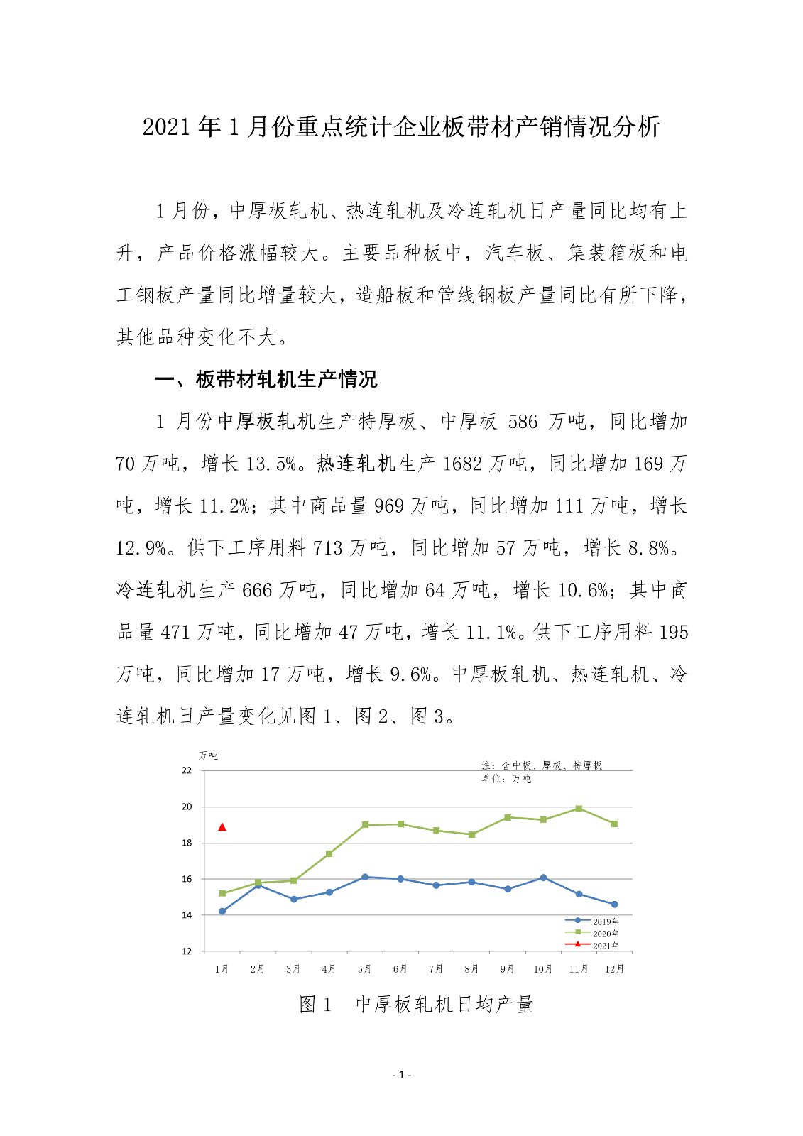 中钢协:2021年1月份重点统计企业板带材产销情况分析