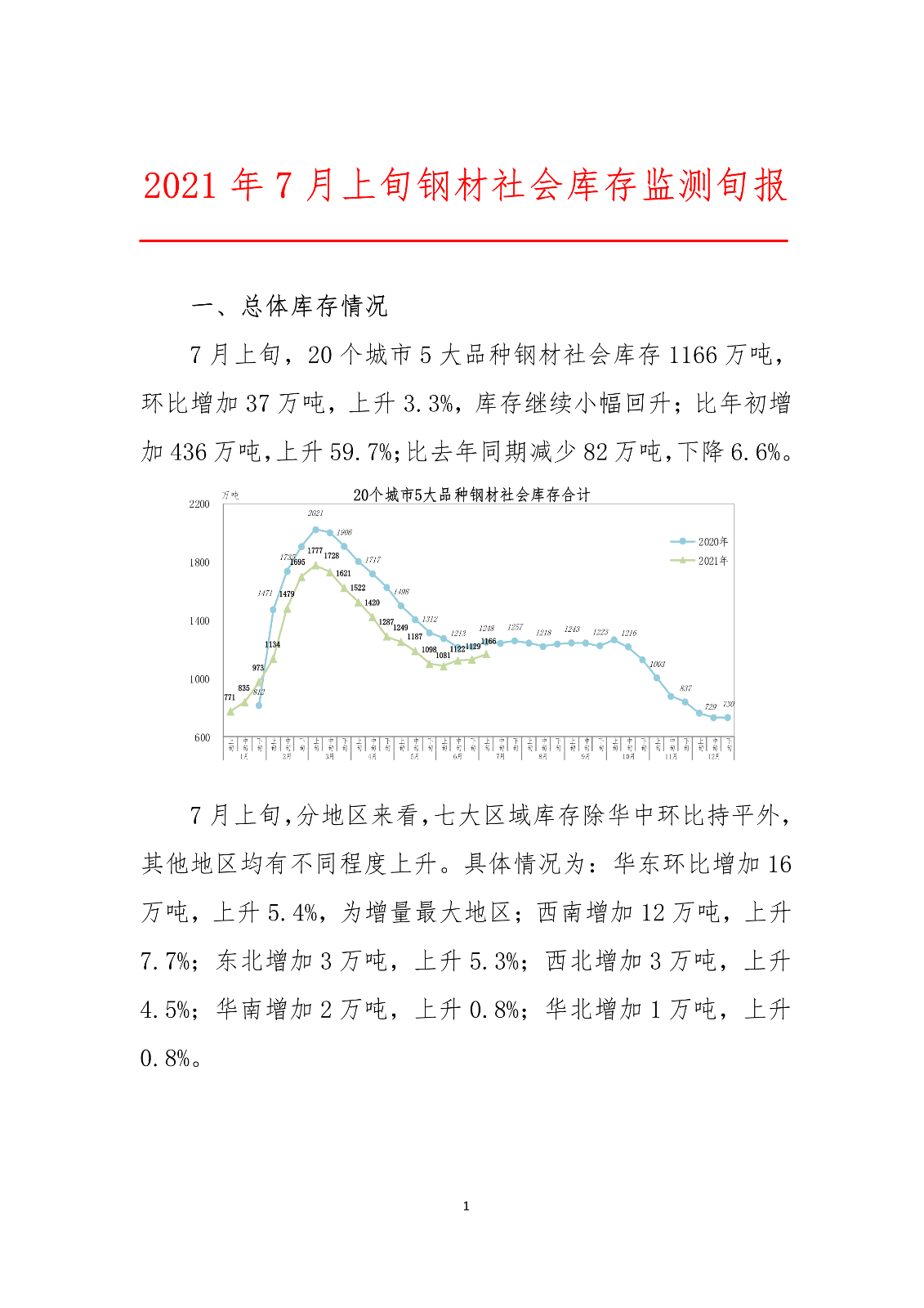 中钢协:7月上旬钢材社会库存监测旬报