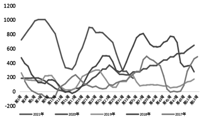 图为中国焦炭库存(周)