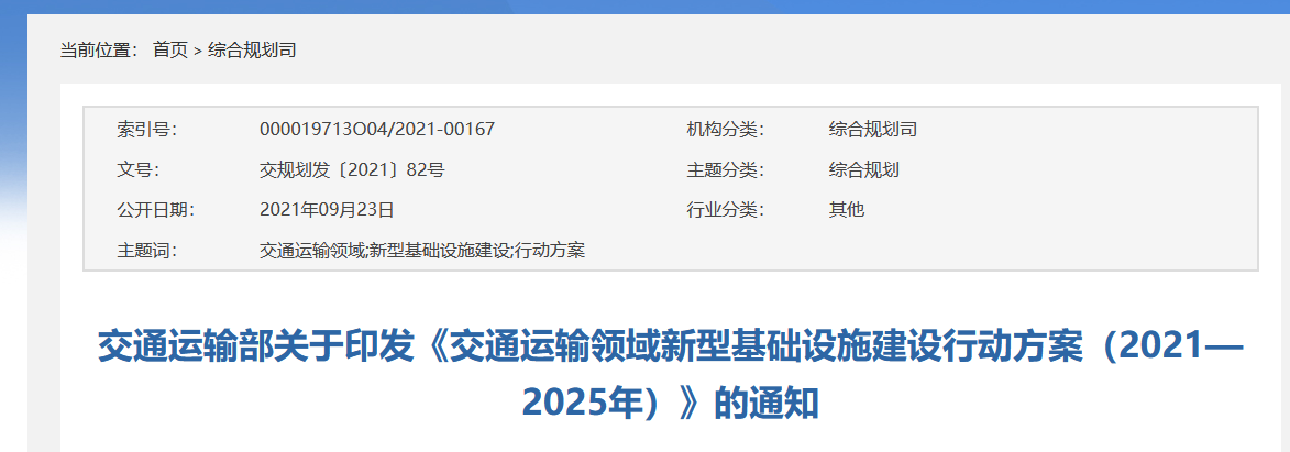 为加快建设交通强国,推动交通运输领域新型基础设施建设,现将《交通运输领域新型基础设施建设行动方案(2021—2025年)》印发给你们,请认真贯彻落实。
