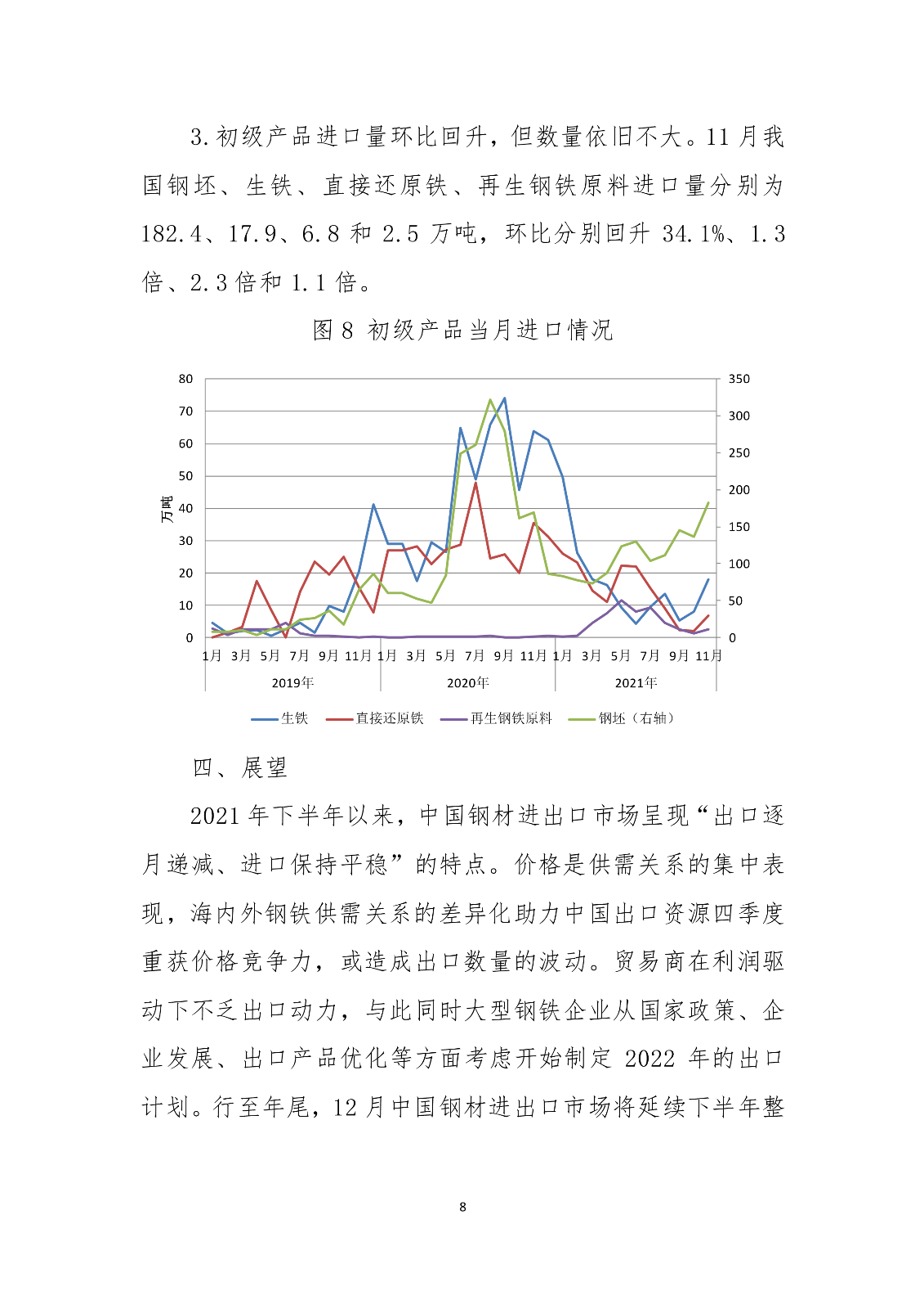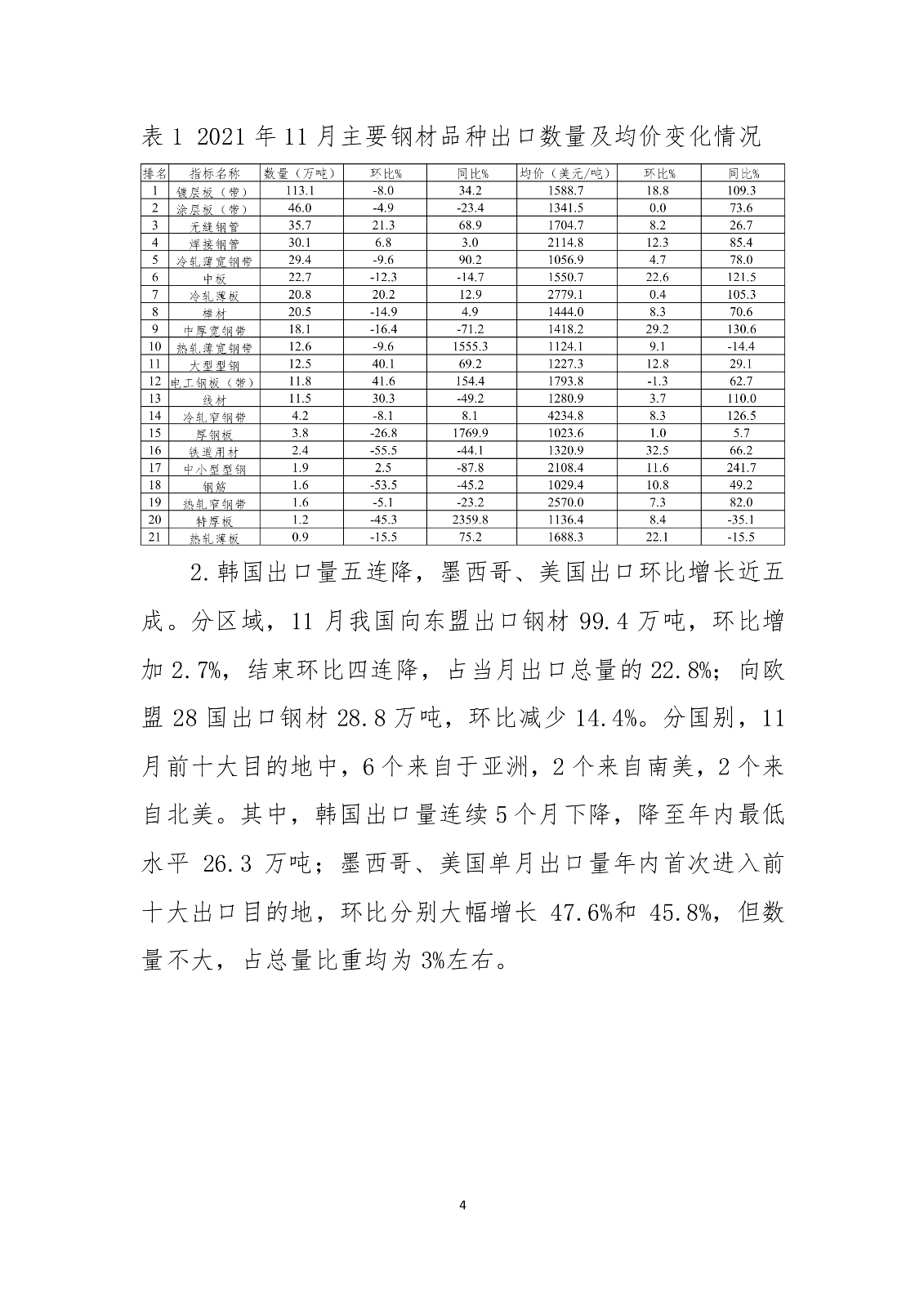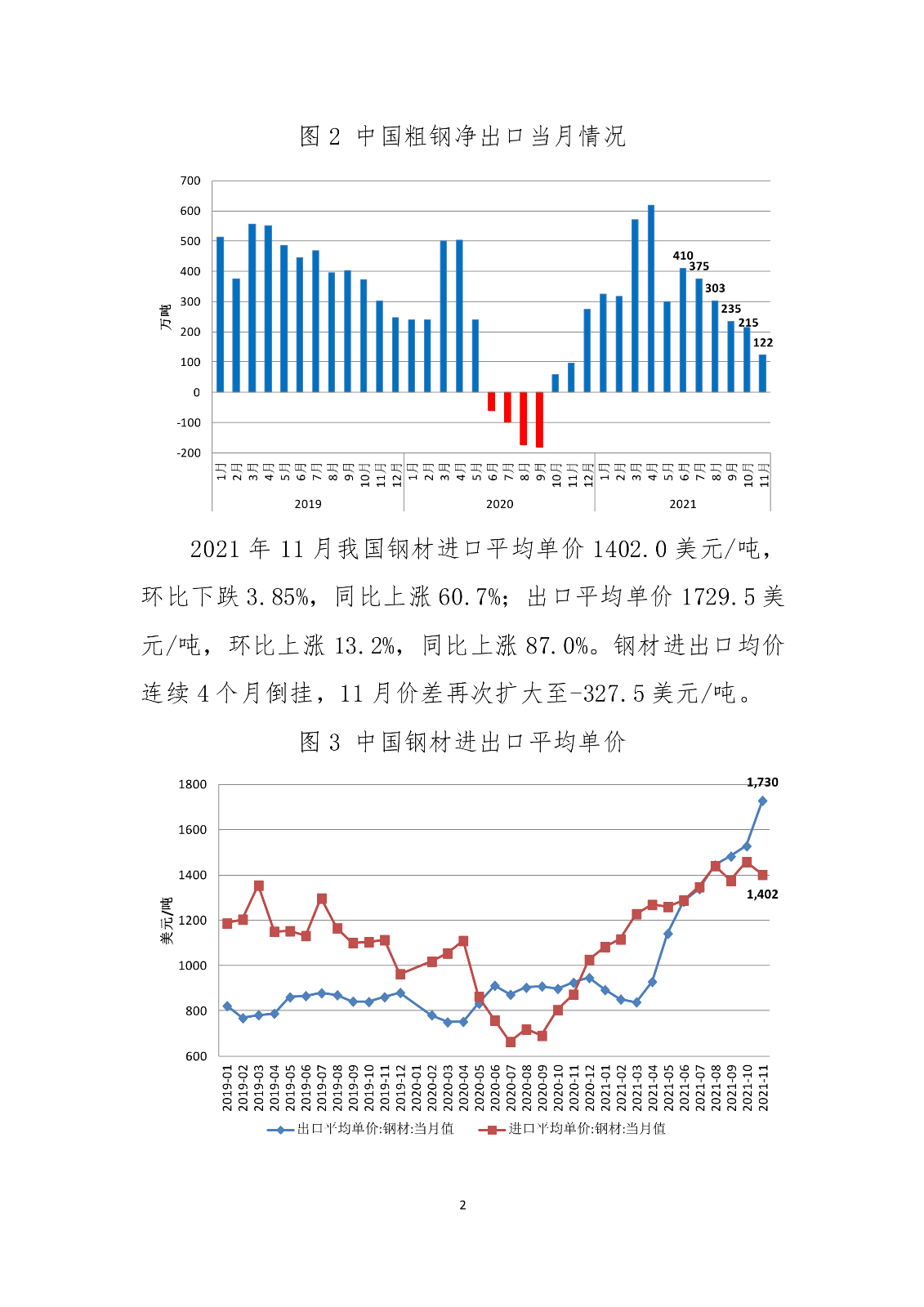 海关数据显示,2021年前11个月我国累计出口钢材6187.5万吨,同比增长26.7%。同期,累计进口钢材1326.7万吨,同比下降29.6%;累计进口钢坯1254.9万吨,同比下降28.2%。