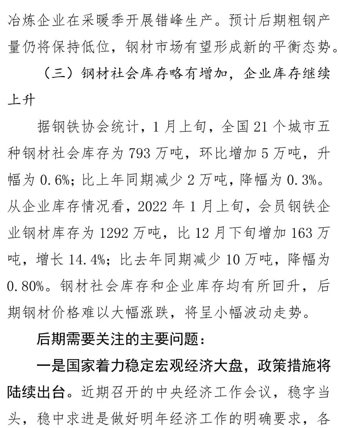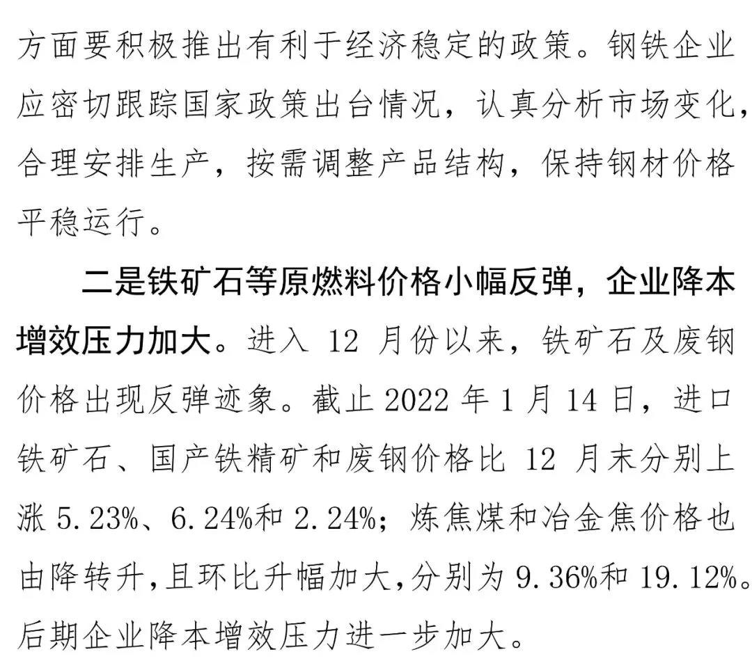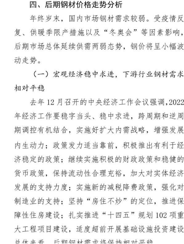 据中钢协分析文章表示,2021年12月份国内市场钢材价格降幅收窄,后期将窄幅波动。