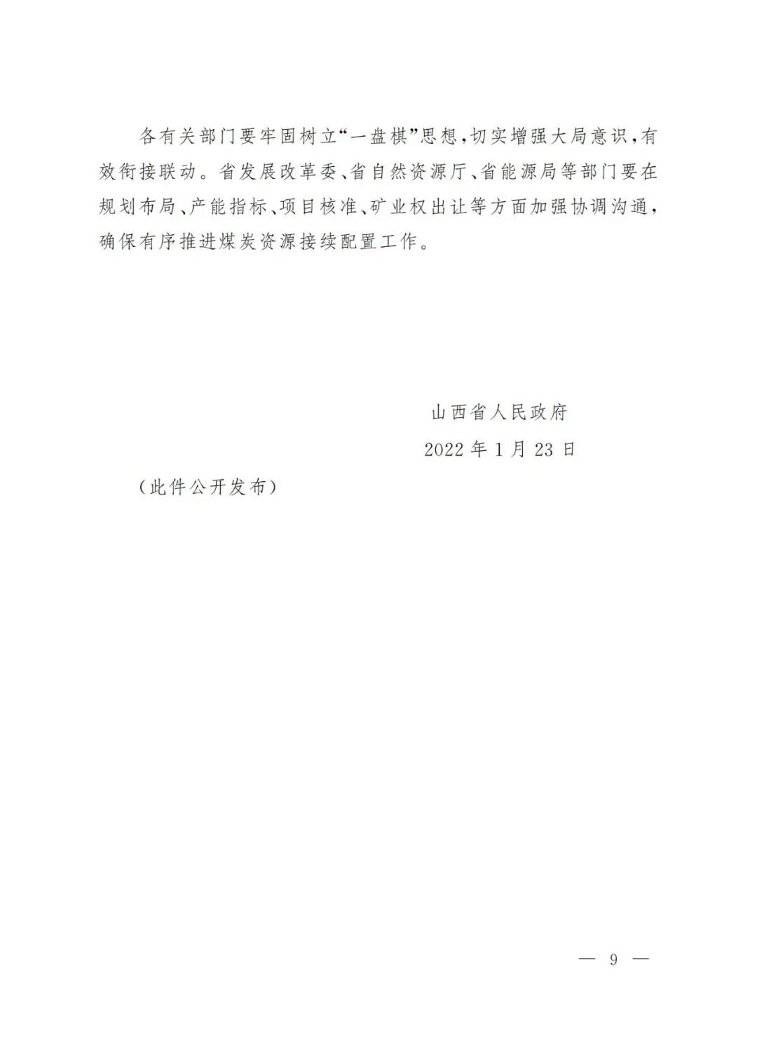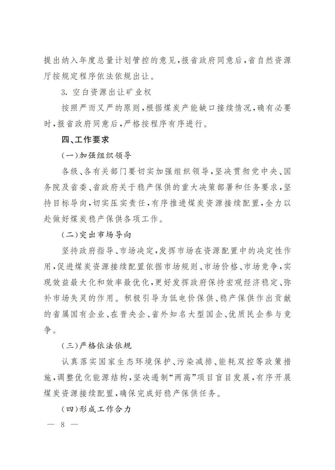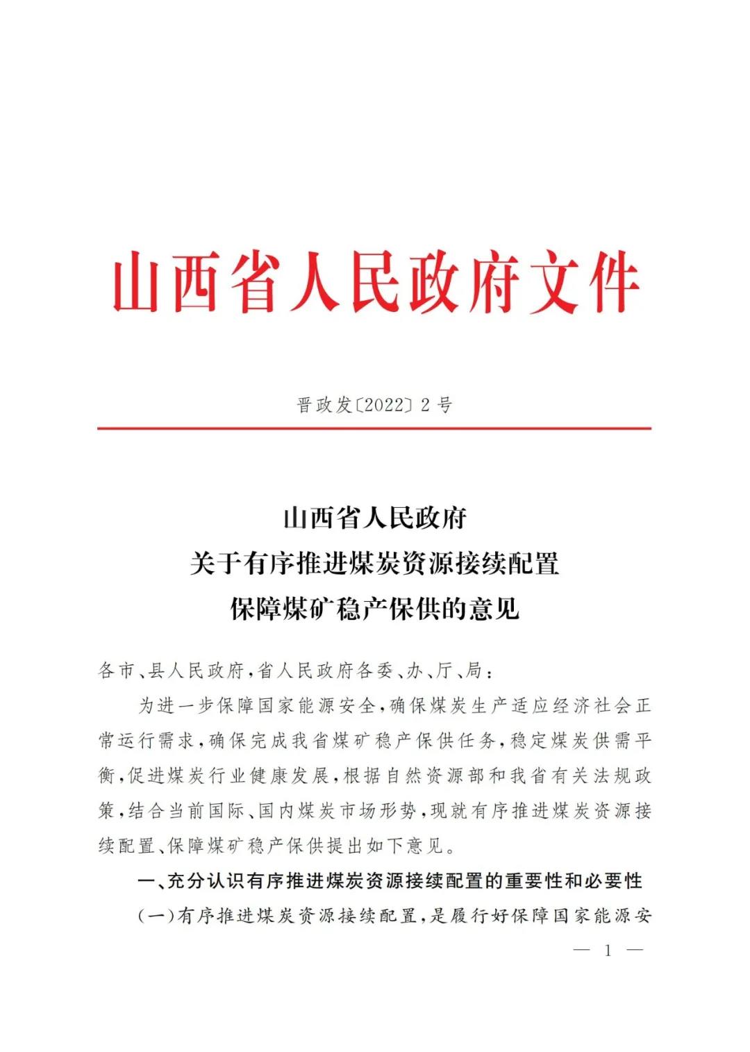 山西关于有序推进煤炭资源接续配置保障煤矿稳产保供的意见